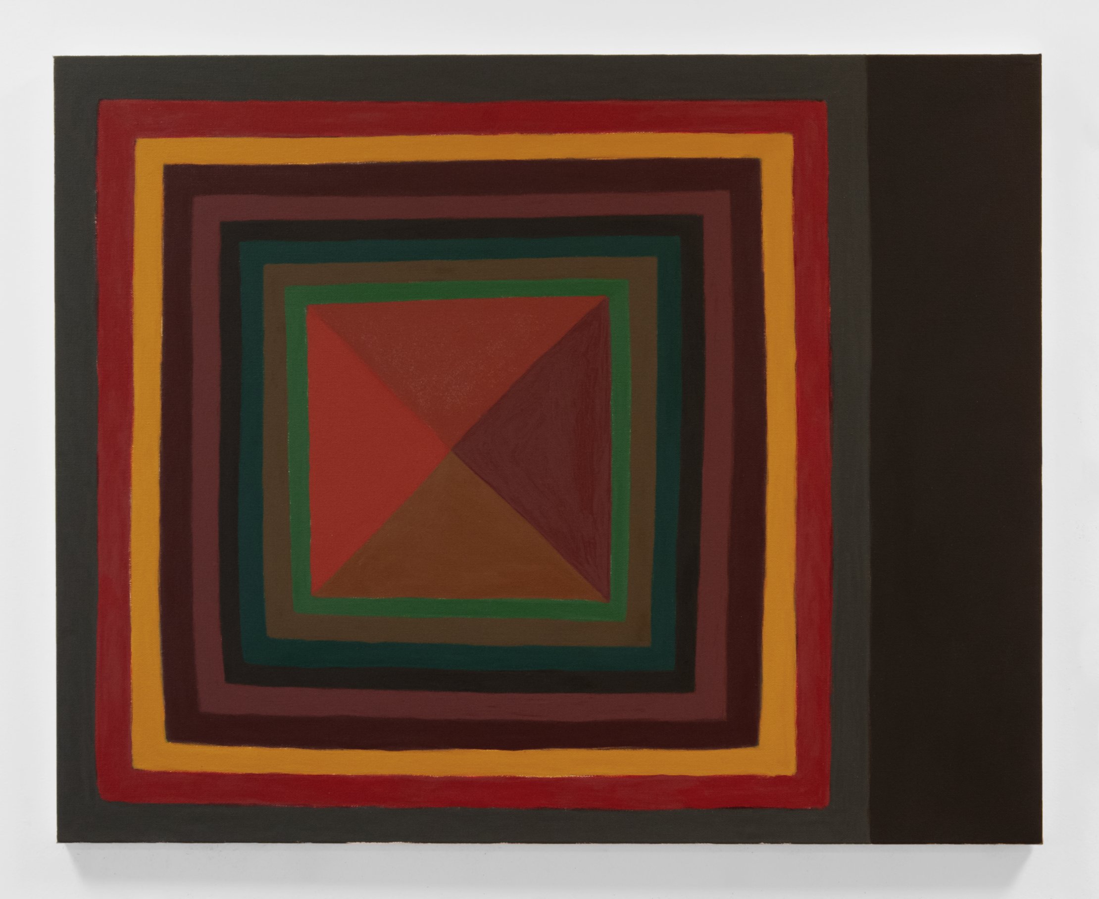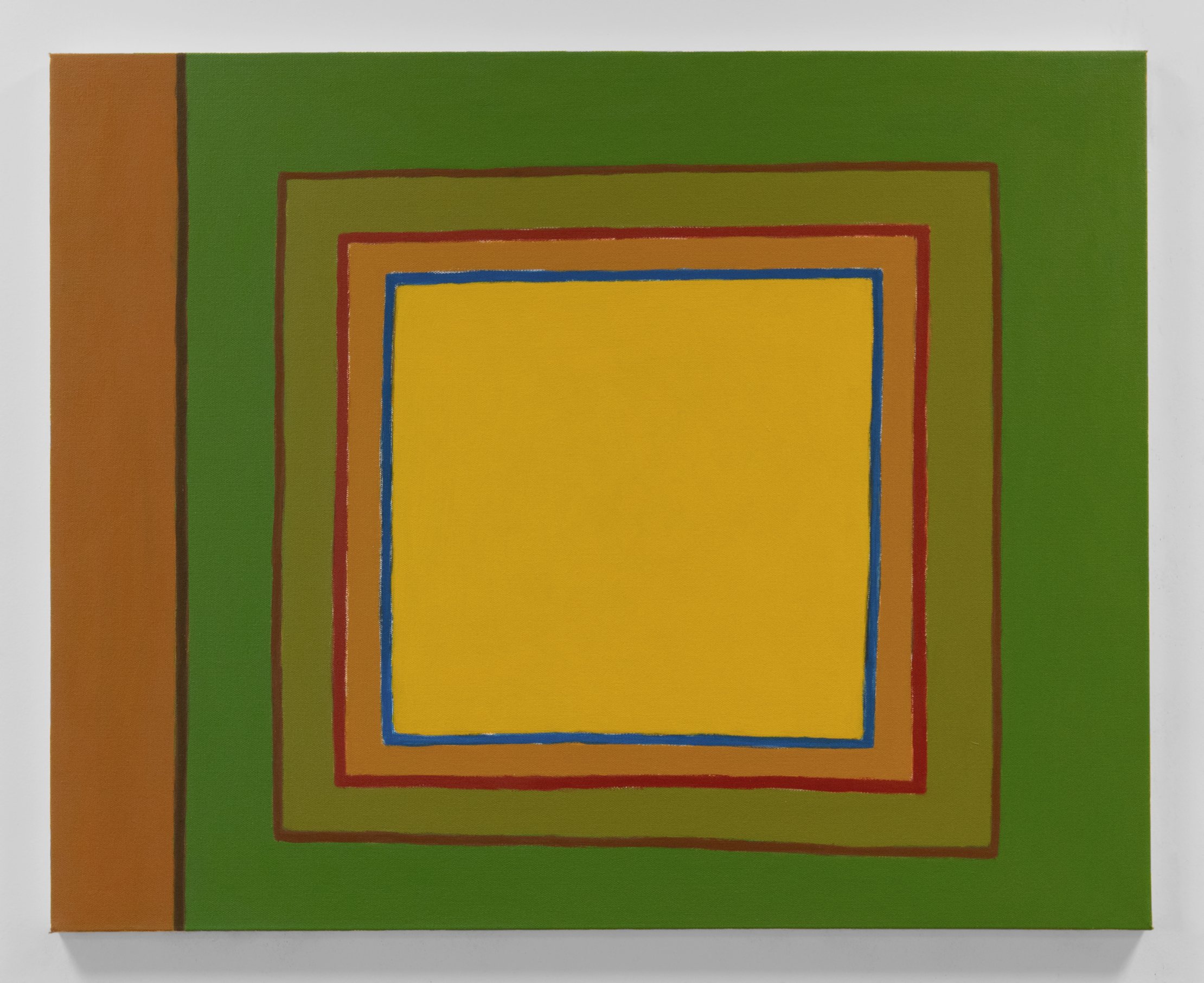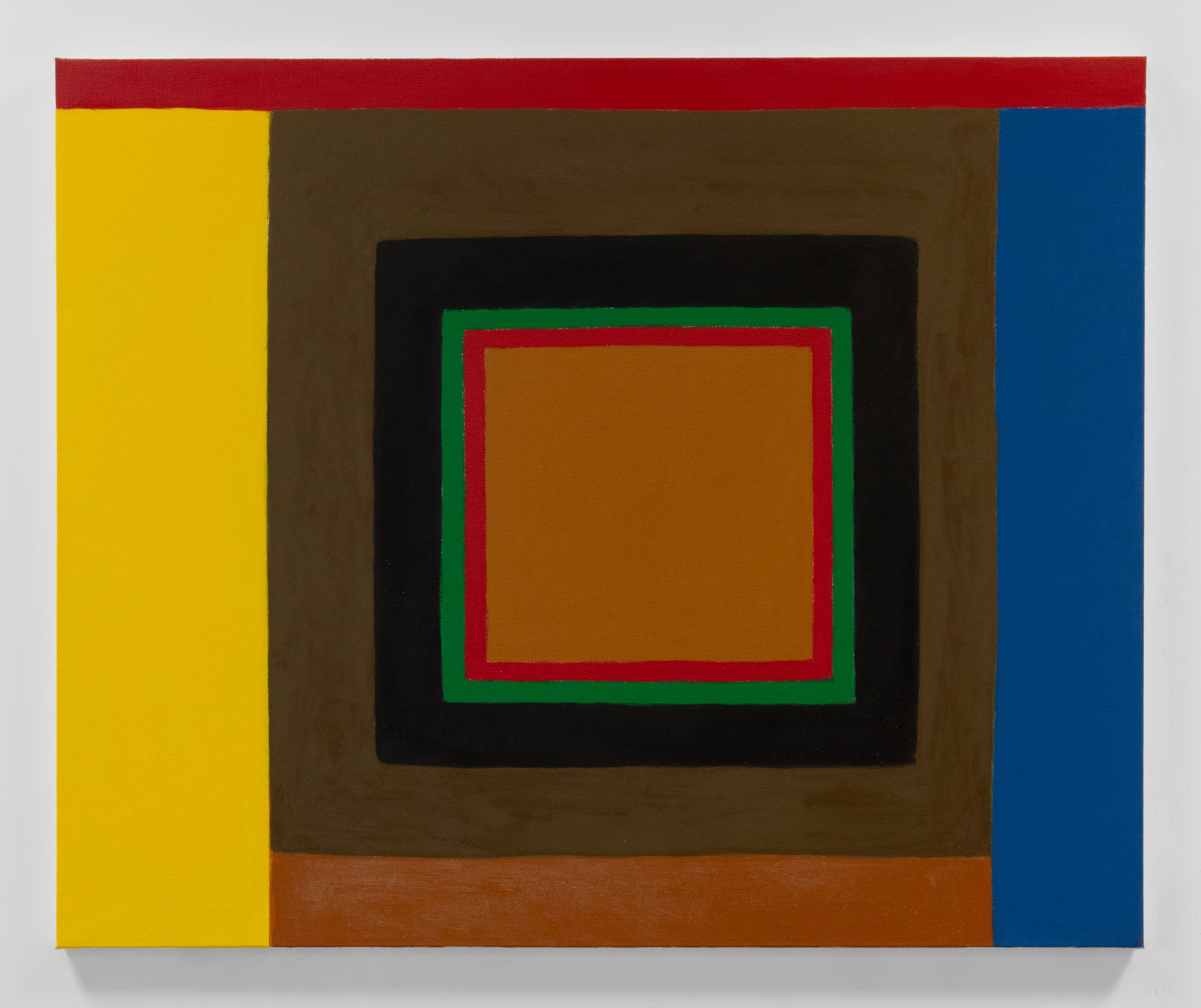 Thomas Erben is thrilled to present Portraits of Squares, 2022-23, Harriet Korman’s fifth exhibition with the gallery, one of which was a solo presentation at Art Basel Miami Beach in 2021. This group of ten new paintings exudes a visual as well as intellectual vibrancy and attraction which, by far, exceeds their modest scale. Preparing for the exhibition, Korman wrote: “Geometric Abstraction isn’t always geometric abstraction. Sometimes my paintings seem to be like figures, not literal figures, but imbued with an essence of being or meaning.” Though Korman has been described “… as one of New York’s purest abstract painters without a brand” (John Yau, reviewing her 2020 survey exhibition in Hyperallergic), there are clear connections between the various series in her oeuvre. These new paintings relate to the works presented in Korman’s widely praised 2018 and 2021 exhibitions. In 2018, she explored a quadrant format, where each quadrant was formulated with bars of random color, resulting in different patterns, configurations, highlights and surprising outcomes. In her 2021 show, the artist used a configuration of concentric rectangles, deciphering and adjusting fast intuitive drawings into necessarily slow paintings, a process she found intriguing. Korman sometimes employs existing formats upon which she feels she could expand in new ways. In her own words: “In 1988 at a Donald Judd exhibition at the Whitney, looking at a box on the floor, a question came to me – how many ways could I paint a square? I finally got to it – Portraits of Squares”. For its specific properties and symbolic value, the square has often been the subject of – mainly – modernist art. Though allowing for many allusions, Korman never leaves her own idiom and tries to infuse each canvas with as much abstract identity and presence as possible.