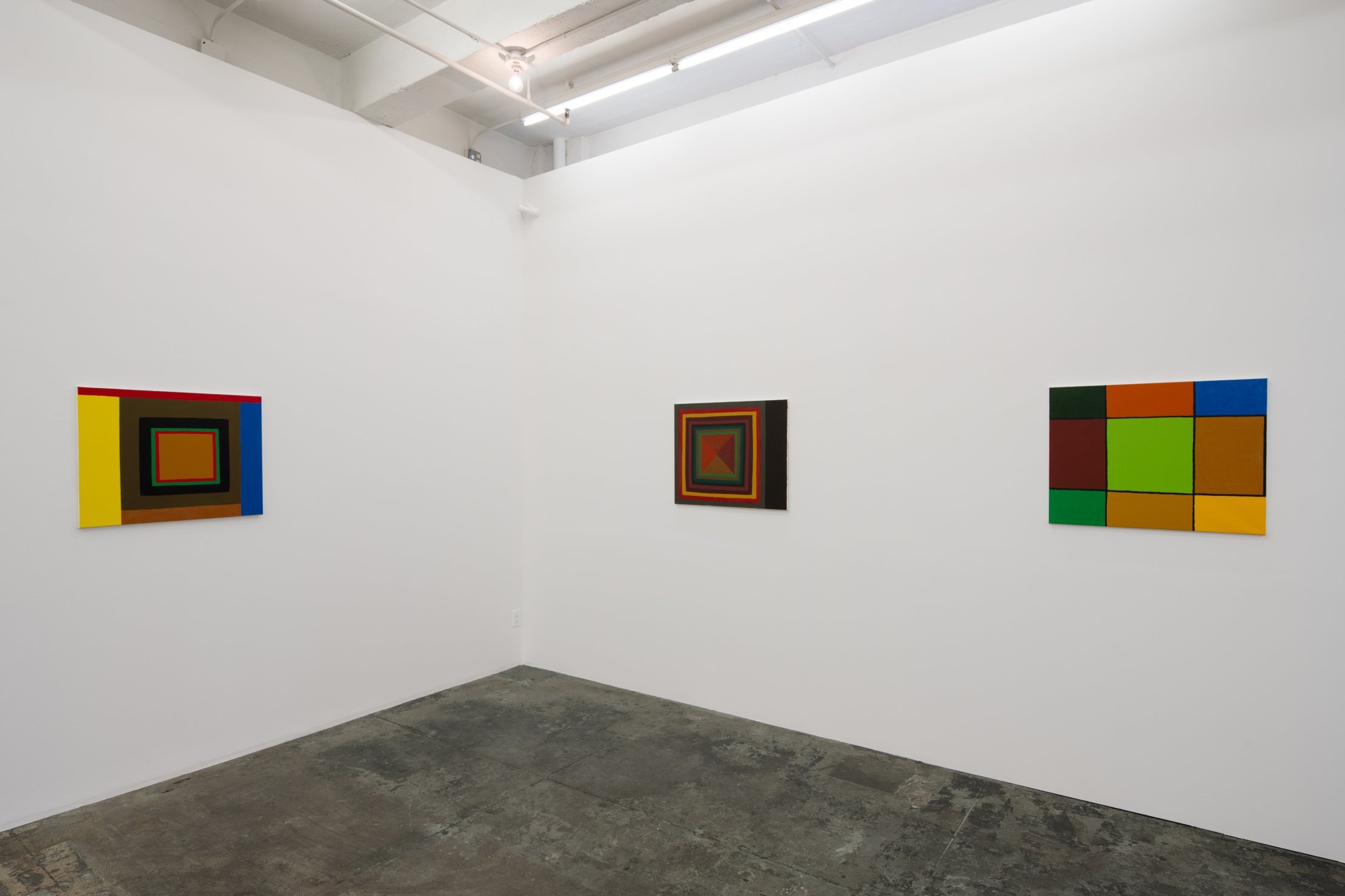 Since 1996, Korman has not mixed any white into her paint, although she sometimes uses white as a separate area. Her paintings are completely flat with no references to light, space, or illusionism, reinforcing the fact that a painting is a painting, a two-dimensional surface. However, in exploring the absolute essentials of the medium itself, she articulates an archetypal, non-dogmatic space, or, as Katy Siegel already observed in Artforum’s Best of 2001: ‘‘Seeing [these stunning, abstract paintings] at Lennon Weinberg was an experience curiously out of time – these are pictures neither burdened with nostalgia nor obviously beholden to current discourses of modernist revival or rejection. Absolutely new, as if they’d always been there.”